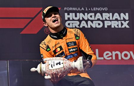BUDAPEST (Reuters) -Lando Norris held off McLaren teammate Oscar Piastri to win the Hungarian Grand Prix on a one-stop strategy and slash the Australian’s Formula One lead to nine points going into the August break.