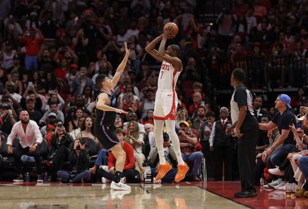 Durant passed Michael Jordan’s career 32,292 points for fifth on the NBA’s scoring list with a corner 3-pointer at the 3:35 mark of the fourth quarter. The Heat (38-33) moved ahead on a goaltending call against Jabari Smith Jr. when he attempted to block Simone Fontecchio’s layup after the Rockets committed a turnover on an inbounds pass by Tari Eason.