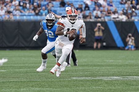 The Panthers led 7-0 after a 5-yard touchdown pass from Bryce Young to Jalen Coker late in the first quarter before Sanders threw his two scoring passes to give the Browns a 14-7 halftime lead. Each time Sanders connected with Kaden Davis, for 7 yards and for 12 yards.
