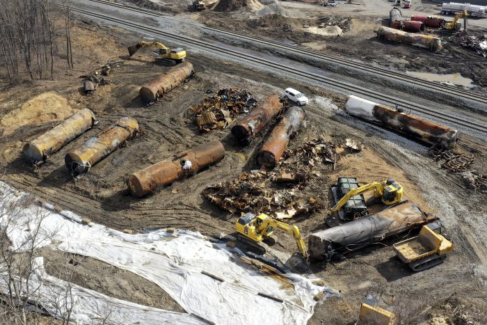 The freight train derailment in the village near the Pennsylvania state line included 11 cars transporting hazardous materials. Area residents evacuated and, days later, officials fearing a possible uncontrolled blast intentionally released and burned toxic vinyl chloride from five rail cars, sending flames and black smoke into the sky. Investigators from the National Transportation Safety Board later determined that it wasn’t necessary to blow open those vinyl chloride cars and burn the plastic ingredient.