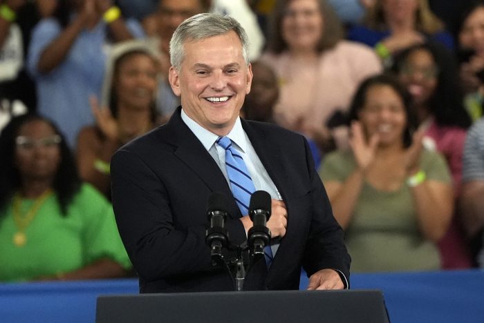 Hurricane Helene and its catastrophic flooding in the mountains affected the campaign’s final weeks, with both candidates participating in recovery activities and comforting victims. Stein’s position as attorney general meant prominence in storm news conferences and meeting President Joe Biden when he visited the state. Robinson worked for several days with a central North Carolina sheriff collecting relief supplies. He criticized Cooper for state government’s initial response to the storm.