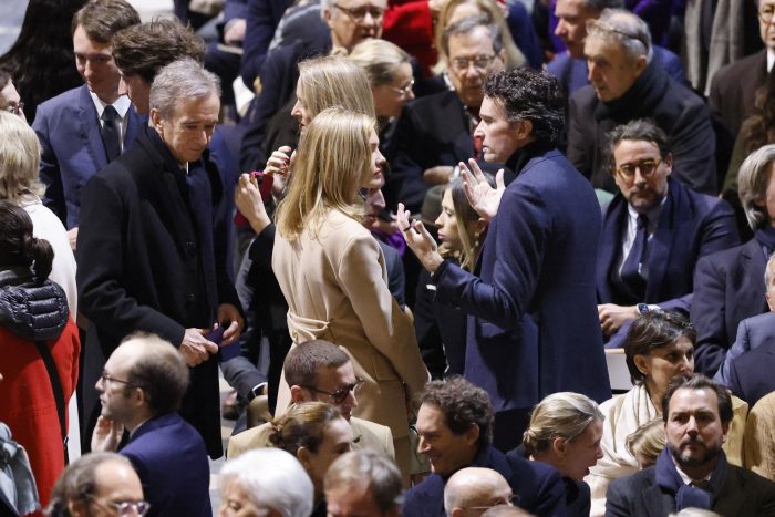Bernard Arnault, the lowkey billionaire behind luxury powerhouse LVMH and a key Notre Dame donor who regularly tops the list of the world’s richest men, was at the center of the celebration. He was surrounded by his family, the French president, the archbishop and clergy, and the unmistakable symbols of his luxury empire’s influence, including its brands Louis Vuitton and Dior.