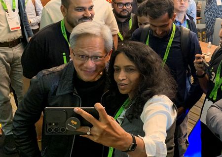 MUMBAI (Reuters) – Nvidia’s leather-jacket-clad CEO Jensen Huang got a rock star welcome at the company’s AI summit in India on Thursday, with passes sold out and tech enthusiasts spending thousands of rupees to travel to the event.