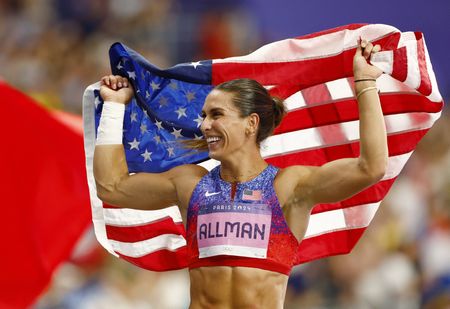 PARIS (Reuters) -Valarie Allman of the United States captured her second consecutive Olympic women’s discus gold medal on Monday, unleashing a 69.50-metre effort on her fourth throw that was nearly two metres better than the rest of the field.