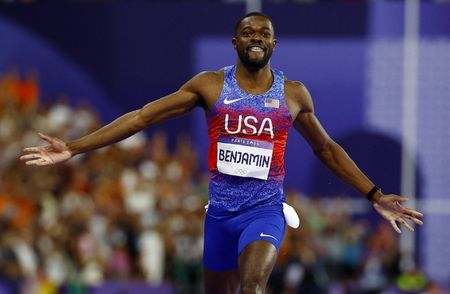 PARIS (Reuters) -Rai Benjamin finally got the better of great rival Karsten Warholm to win the Olympic 400 metres hurdles title on Friday, continuing the United States’ athletics gold rush and foiling the Norwegian’s bid to be the second man to retain the title.