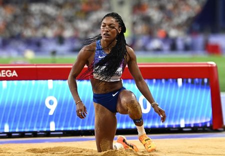PARIS (Reuters) -American Tara Davis-Woodhall soared to Olympic gold in the women’s long jump on Thursday, sealing victory with a gigantic fourth leap to improve on her silver medal performance at last year’s world championships.