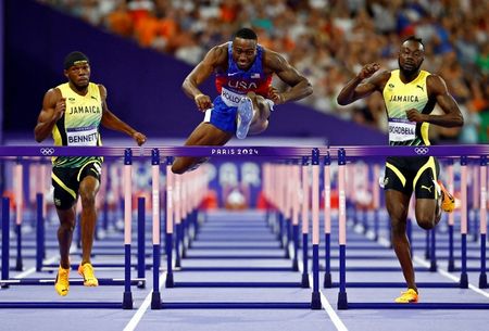 PARIS (Reuters) -American Grant Holloway finally added Olympic 110 metres hurdles gold to his sizeable trophy cabinet on Thursday, exploding out of the blocks as usual before cruising to victory.