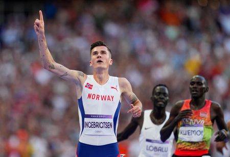 PARIS (Reuters) -Norway’s Jakob Ingebrigtsen bounced back from defeat in the 1,500 metres to win the Olympic 5,000 metres gold with a fierce final lap on Saturday, just as he did in the last two world championships.