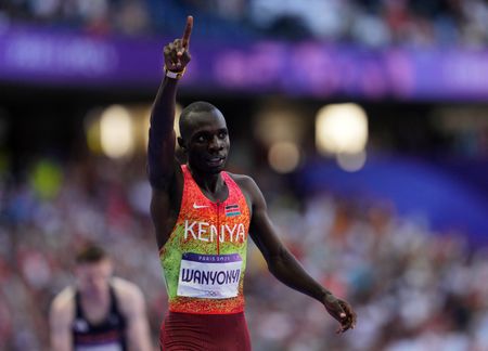 PARIS (Reuters) – Kenya’s Emmanuel Wanyonyi held off one of the strongest fields in history to win the Olympic gold medal in the men’s 800 metres on Saturday, securing his country’s fifth consecutive Olympic title in the event.