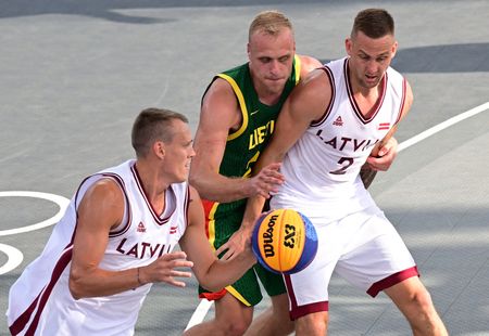 Tokyo gold medallists “Batman” Karlis Lasmanis and “Robin” Nauris Miezis scored 16 points, including five two-pointers from long range, to drive a new-look Latvia team to victory.