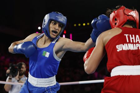 PARIS (Reuters) -Imane Khelif, the boxer at the centre of a gender dispute, beat Thailand’s Janjaem Suwannapheng by unanimous decision in a welterweight semi-final fight at the Paris Olympics on Tuesday to progress to the women’s final at Roland Garros.