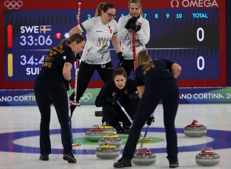 CORTINA D’AMPEZZO, Italy, Feb 16 (Reuters) – Anna Hasselborg’s Sweden continued their perfect start to the women’s competition at the Winter Olympics on Monday as they defeated Switzerland 6-4 to pick up their sixth straight win and cement their position at the top of the round-robin standings.