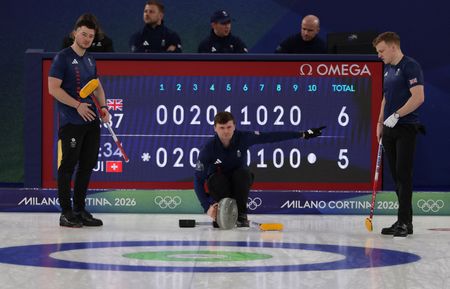 CORTINA D’AMPEZZO, Italy, Feb 19 (Reuters) – World champions Britain nabbed a steal of two in the final end to beat Switzerland 8-5 in a thrilling semi-final clash on Thursday in the men’s curling competition at the Winter Olympics and set up a final against Canada.