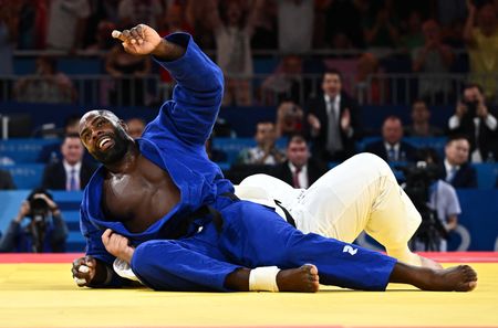 PARIS (Reuters) – Teddy Riner won the decisive bout against Japan’s Tatsuru Saito in a moment of great drama to give France the judo mixed team title at the Paris Games on Saturday, earning him a national record-equalling fifth Olympic gold medal.
