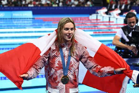 PARIS (Reuters) – Summer McIntosh’s rampaging win in the women’s 400 metres individual medley (IM) at the Paris Olympics on Monday could not have come at a better time for a beleaguered Canadian team sinking under the weight of a soccer spying scandal.