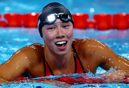 PARIS (Reuters) -Torri Huske reeled in U.S. teammate and world record holder Gretchen Walsh to win the women’s 100 metres butterfly gold by 0.04 of a second on an electric night in the Paris Olympic pool on Sunday.