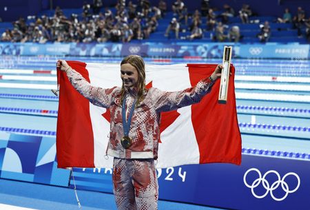 PARIS (Reuters) – Summer McIntosh showed the Paris Olympic pool the thrill of the new with a second gold medal for Canada on Thursday, but it was golden oldie Katie Ledecky standing alone at the end of day six as the most decorated female swimmer of all time.