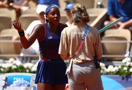 PARIS (Reuters) -American Coco Gauff’s hopes of singles gold at the Olympics evaporated in the third round as she argued with officials and slumped to a 7-6(7) 6-2 defeat by Croatia’s Donna Vekic in furnace-like conditions at Roland Garros on Tuesday.
