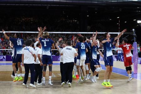 PARIS (Reuters) -France beat the world number one ranked side Poland 3-0 to win the Olympic men’s volleyball gold on Saturday, defending their title from the Tokyo Games but this time on home soil inside a rocking South Paris Arena 1.