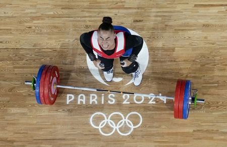 PARIS (Reuters) -Norway’s Solfrid Koanda put in a dominant performance to win the new 81kg weightlifting title at the Paris Games on Saturday, hoisting aloft a combined total of 275kg to give her country only its second Olympic title in the sport.