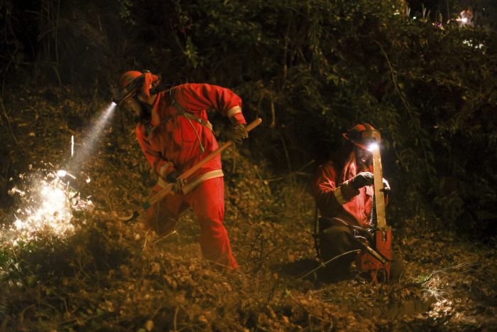 Braving powerful winds and debris, crews cut fire lines around homes, cleared vegetation, removed propane tanks and anything else that could fuel the fire. The firefighters described carrying 45 to 65 pounds — or more — of gear while hiking for hours in steep, rugged terrain to cut containment lines to keep flames from spreading.