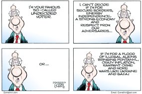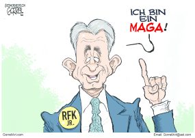 Born and raised in Greensboro, North Carolina, Gorrell’s work has appeared in hundreds of daily and weekly newspapers, including The Atlanta Journal, The Portland Oregonian, The Providence Journal, USA Today, The New York Post, The Washington Times, The Wall Street Journal and The New York Times. His commentary has been featured in Time, Newsweek, National Review, and other prominent periodicals, and college papers receive his drawings through the U.S.I.C. Educational Foundation. Winner of the 1997 National Press Foundation’s Berryman Award as Editorial Cartoonist of the Year, Gorrell has received numerous other accolades.