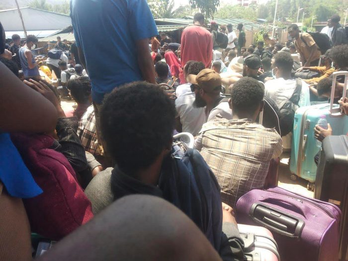 The men and women grew scared, and on Sunday, they took things into their own hands. They all packed up their suitcases and decided to head for the compound’s exit. “We are tired and we want to go,” said one man. “There’s no proper food. We are sleeping on the floor.”