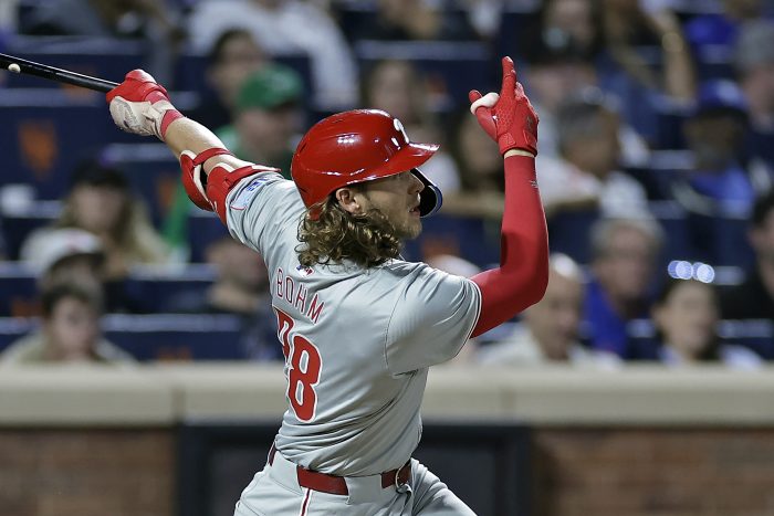 NEW YORK (AP) — Alec Bohm had four hits and four RBIs, including a three-run homer, and the Philadelphia Phillies wrapped up their third straight playoff berth in style by blowing out the New York Mets 12-2 on Friday night. Nick Castellanos had three hits and two RBIs, J.T. Realmuto added a two-run homer and […]