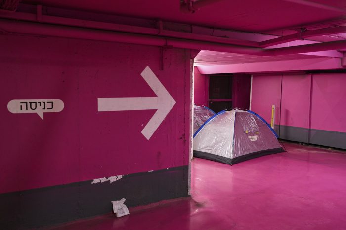 Photos of Israel’s underground parking lots and subways being used as bomb shelters during war