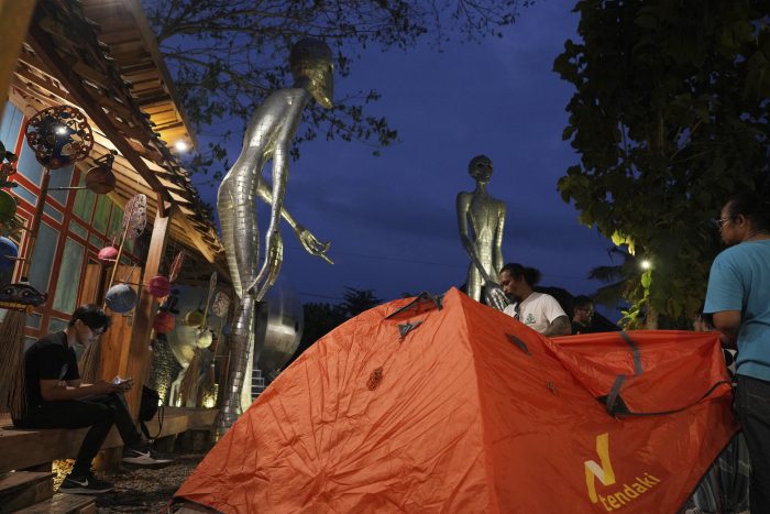 YOGYAKARTA, Indonesia (AP) — A metallic spacecraft glistens under ambient light as two figures with elongated limbs, bulbous heads and featureless faces gaze with black eyes into the distance of the island of Java. The extraterrestrial arrival in Indonesia is one of the science fiction scenes that has captivated groups of outer space enthusiasts at […]