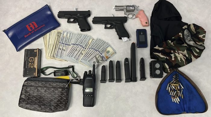 During Wednesday’s operation, officials recovered stolen luxury watches, bracelets, high-end purses, wallets and cash. They also found burglary tools like window-breaking devices and handheld radios, large amounts of ammunition and firearms, narcotics, a money counter and multiple cellphones, police said.