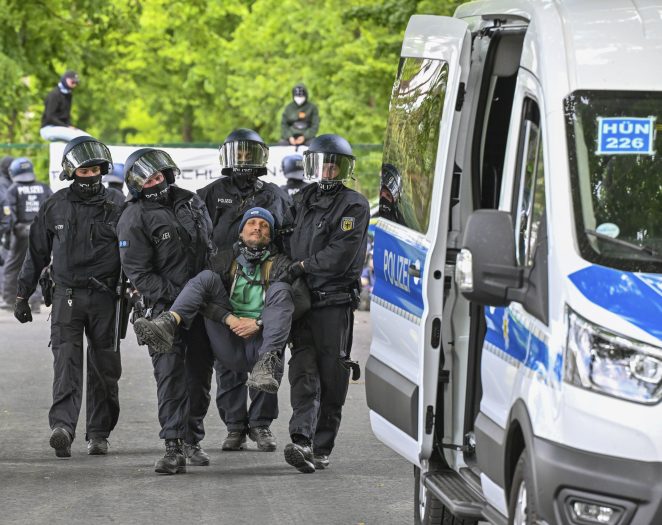 Police detained several people temporarily, German news service dpa reported.