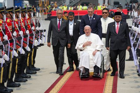 PORT MORESBY (Reuters) – Pope Francis arrived in Papua New Guinea on Friday evening from Indonesia, where the 87-year-old leader of the global Catholic Church will continue an ambitious 12-day tour across Southeast Asia and Oceania.