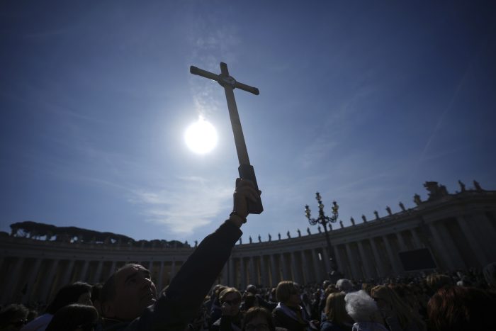 ROME (AP) — The Vatican on Sunday released the first photograph of Pope Francis in more than a month, showing the pontiff in a three-quarter view from behind wearing a purple stole typical of Lenten liturgical vestments and sitting in a wheelchair before the altar of his personal hospital chapel. The Vatican said he was […]