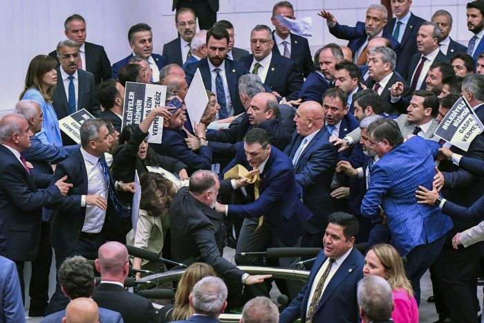 ANKARA, Turkey (AP) — More than a dozen legislators from Turkey’s pro-Kurdish party staged a demonstration in parliament on Tuesday to denounce the arrest and expulsion from office of a newly elected mayor, Turkish media reported.