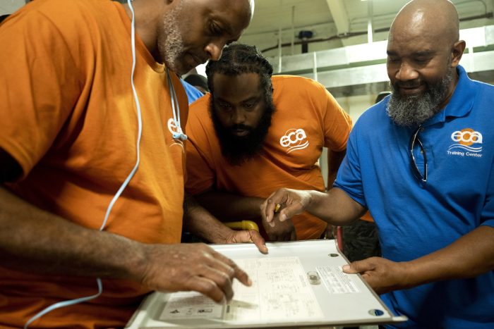 The Energy Coordinating Agency trains more than 200 people each year as building analysts, solar panel installers, and commercial heating, ventilation and air conditioning technicians. It offers the classes free, with funding from grants. Low-income people from the neighborhood can also come in for help with their utility bills and budget counseling.
