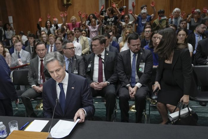 Blinken, speaking to senators about the Biden administration’s foreign affairs budget proposal, was repeatedly interrupted by protesters condemning U.S. policy toward its ally Israel and its war against Hamas in Gaza.