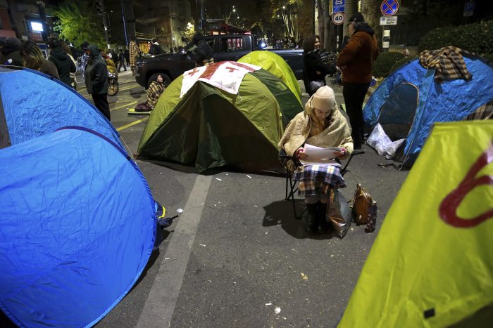 TBILISI, Georgia (AP) — Demonstrators in Georgia’s capital have set up tents on a central thoroughfare and vowed Monday to stay around the clock to demand new parliamentary elections in the country.