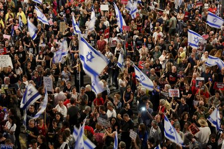 TEL AVIV (Reuters) – Thousands of Israelis took to the streets on Saturday demanding that Prime Minister Benjamin Netanyahu’s government do more to secure the release of hostages being held in the Gaza Strip by Islamist group Hamas.