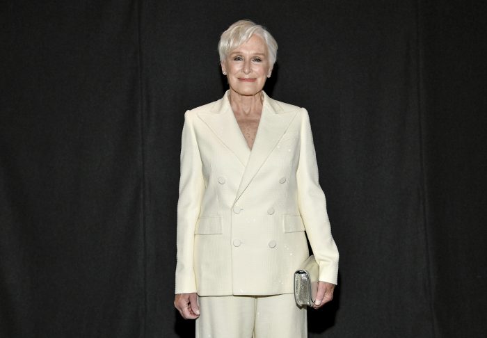 Close wore a white Lauren pantsuit. “This is a very, very special suit,” the actor said. “It was made especially for me. Custom. Five years ago. I won a SAG Award in it. So here I am. It looks just as beautiful. It’s a shame to wear something like this only once.”