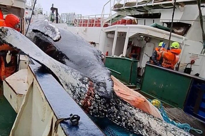 “Upon release it was lethargic and had some injuries from rubbing with the net,” according to a report by Chile’s delegation to the CCAMLR talks that included graphic images of the capture. Although the whale was observed swimming, the capture was considered a mortality event by CCAMLR scientists because the released whale’s injuries were likely to prove fatal.