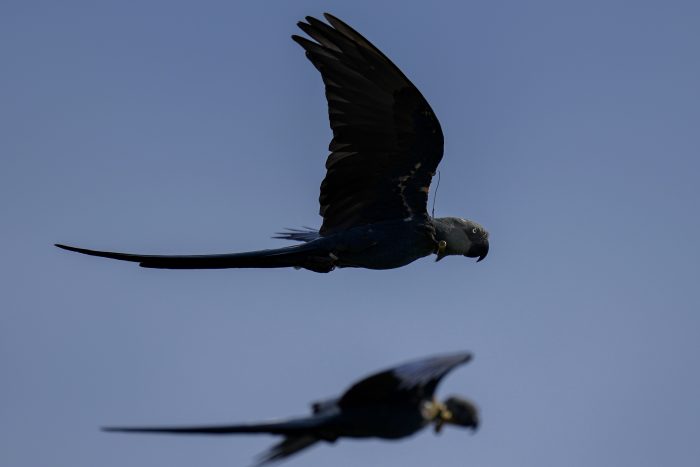 This familiarity offers a glimpse of the South African couple’s commitment to saving one of the world’s most critically endangered species. The parrot — endemic to a small fraction of the Sao Francisco River basin and already rare in the 19th century — was declared extinct in the wild in 2000, when a lonely surviving male disappeared following decades of poaching and habitat destruction from livestock overgrazing. The few remaining birds were scattered in private collections around the world.