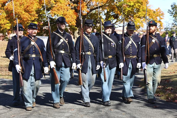 In a traditional service offered to Civil War veterans, the historical 4th U.S. Infantry Regiment dressed in Union uniforms fired musket volleys and the crowd sang “The Battle Hymn of the Republic.” Names were called out for each veteran and their unit before their remains were brought forward and stories were shared about their exploits. Then, they were buried.
