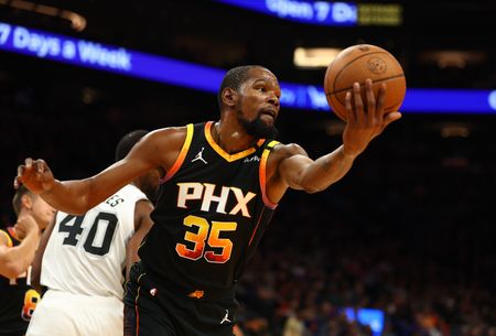 Durant, 36, was injured when he stepped on the foot of San Antonio’s Julian Champagnie with 4:30 left in the second quarter.