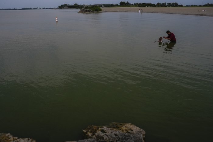 Dan Desmond, who was walking along the beach at Maumee Bay State Park with his grandnephew, said he checks on the bloom before getting near the lake.