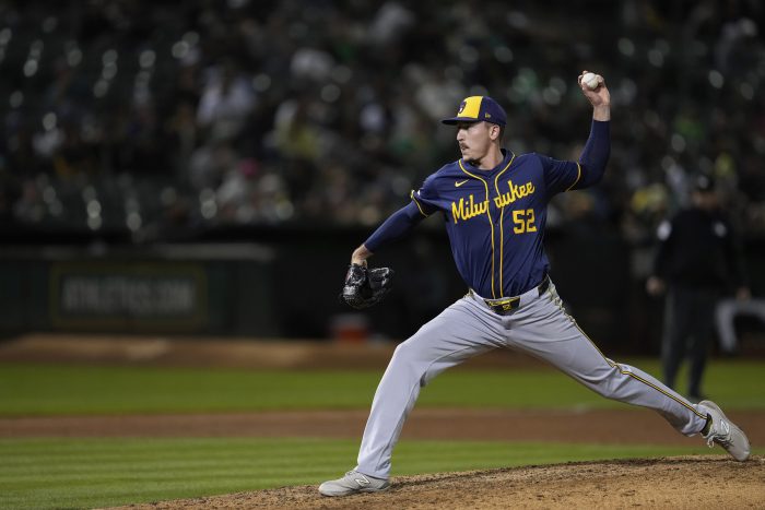 Neither starter lasted five innings. The Brewers’ Aaron Civale allowed three runs in four innings, and the A’s JP Sears (10-9) left with two outs in the third after giving up five earned runs. Sears had entered the game 3-0 with a 1.57 ERA over his last four starts.