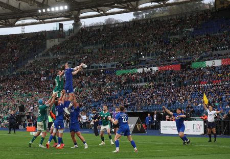 ROME (Reuters) – Hooker Dan Sheehan scored a hat-trick of tries as champions Ireland laboured to a 22-17 bonus-point victory over hosts Italy on Saturday to move top of the Six Nations table and retain a chance of winning the title.