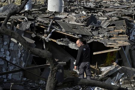 KYIV (Reuters) – Attacks by Russian forces on Ukraine overnight and on Thursday across the country hit civilian and critical infrastructure facilities, injuring at least 10 people, Ukrainian authorities said. Russia launched two ballistic missiles on the southern city of Mykolaiv in the early afternoon, targeting critical infrastructure, regional Governor Vitaliy Kim said.