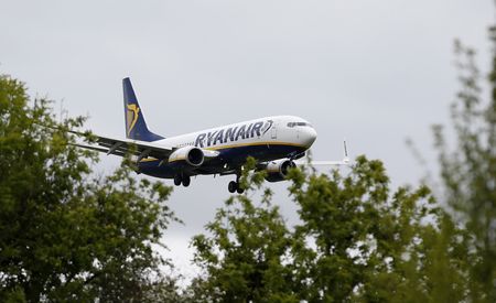 DUBLIN (Reuters) -Europe’s largest low-cost airline, Ryanair on Monday trimmed its passenger growth target for next year due to Boeing delivery delays, but said weakness in fares was moderating following a poor summer.