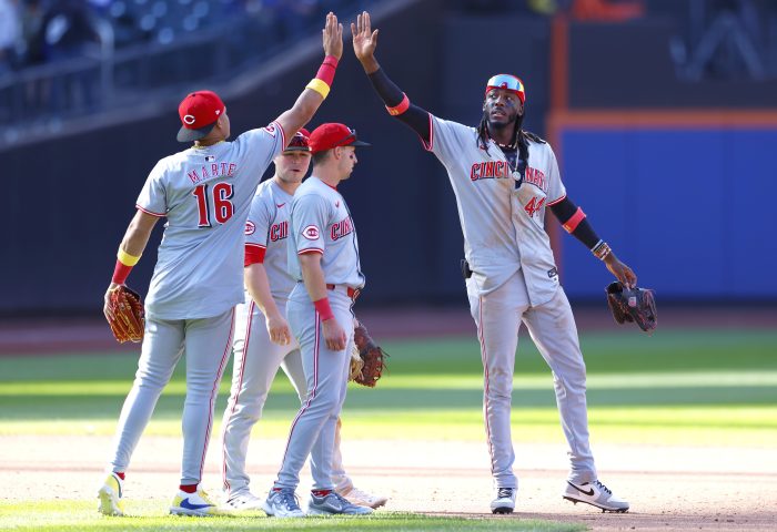 A quartet of Reds relievers combined to retire the last 10 Mets following Starling Marte’s RBI single in the sixth. Buck Farmer (3-0) threw the eighth and Alexis Díaz earned his 26th save with a 1-2-3 ninth.